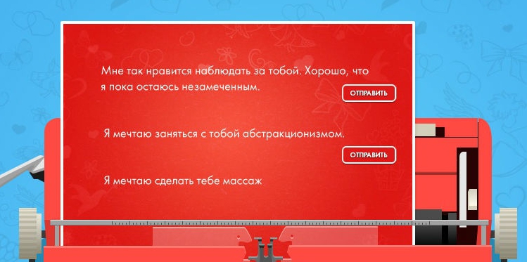 «Генератор комплиментов борется с банальностью: в отличие от скучных открыток со стихами и признаниями, приложение делает комплименты всему подряд – от изящных запястий до манеры завязывать шнурки. Им может воспользоваться кто угодно, даже ваша кошка. Просто стучите по клавиатуре – и на экране появится остроумное признание, а трогательная сова доставит вашу валентинку прямо на стену друга в Фейсбуке», - объяснили концепцию приложения креаторы.