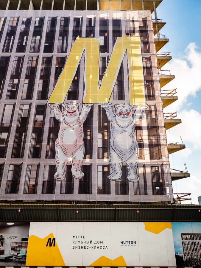 Первым сотрудничеством девелопера с современными художниками стал комьюнити-арт-проект для клубного дома Mitte, фасад которого был оформлен художницей Данини. Проект был реализован на сетке клубного дома и приобрел популярность среди жителей района: было выложено множество историй в Instagram с отметкой Hutton и художницы.