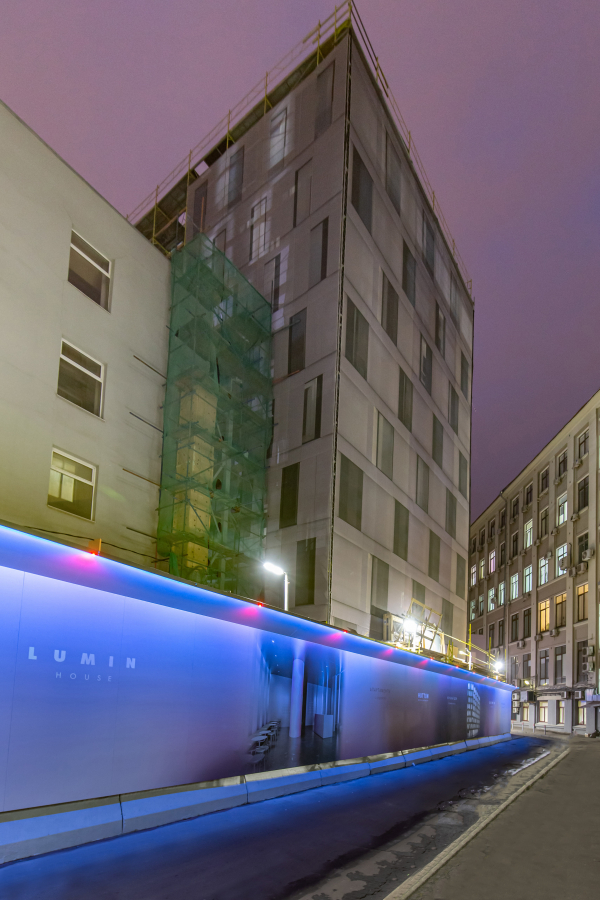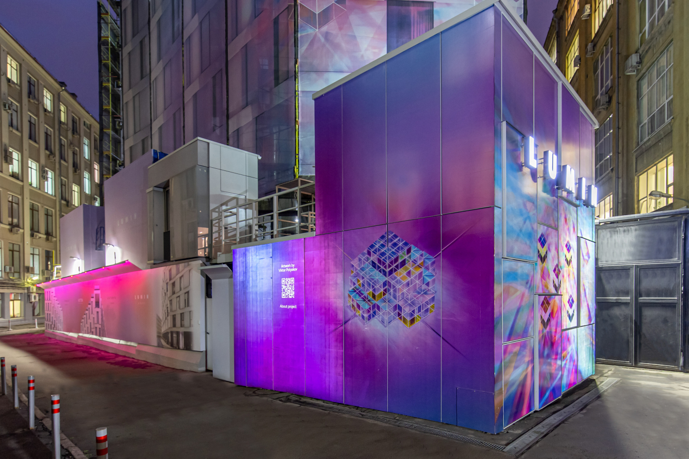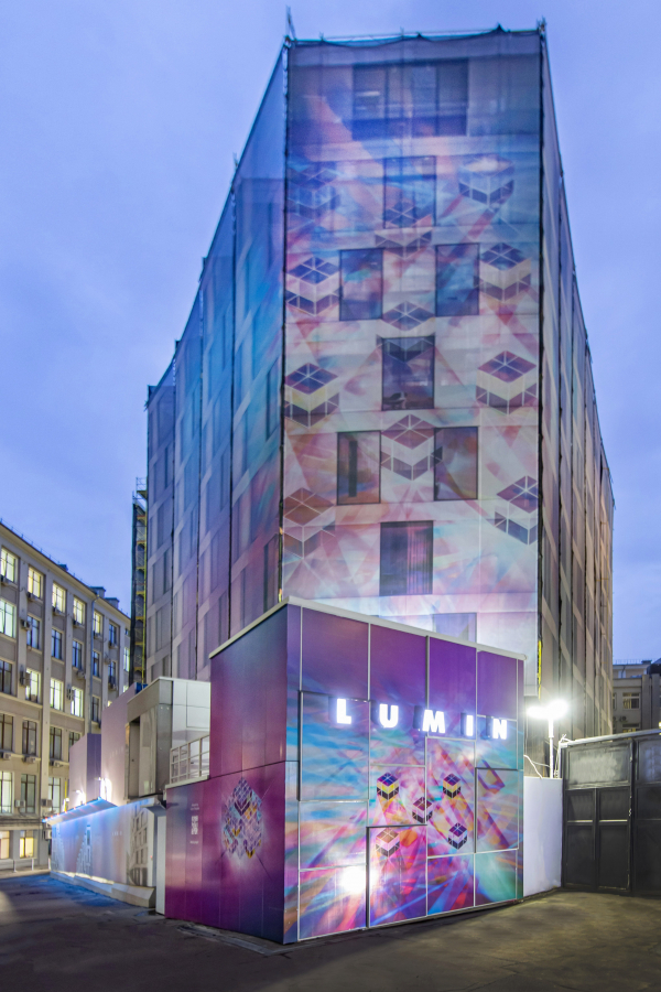 В рамках проекта дома Lumin, который расположен на Славянской площади, этой осенью была создана коллаборация с художником и фотографом Виктором Поляковым. Он представил арт-концепт кофра дома Lumin. В основу концепции легла отсылка к лучизму — авангардистскому художественному направлению, разработанному Михаилом Ларионовым. Работа полностью заняла фасад будущего дома, благодаря чему уже издалека привлекала внимание зрителей.