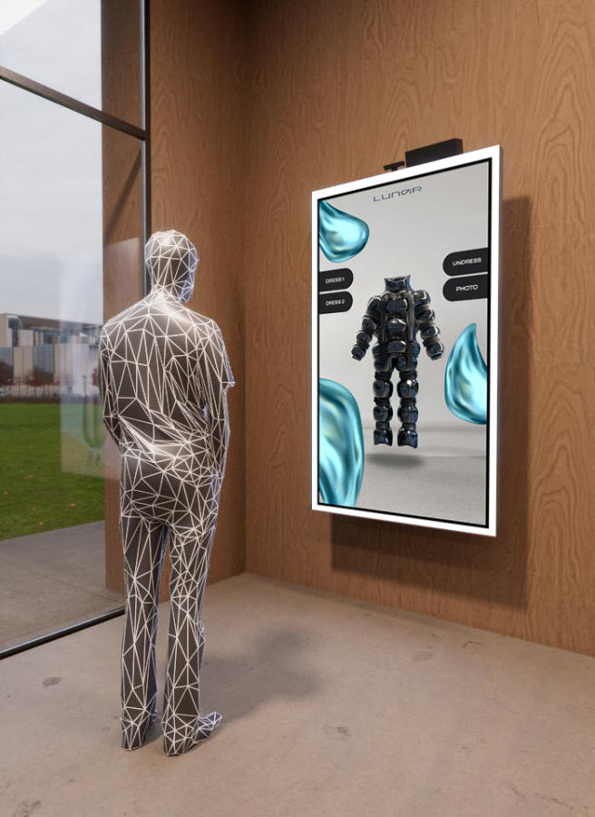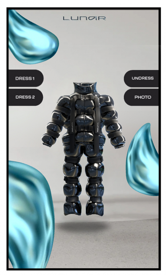 Посетители офиса смогут примерить специальные диджитал-костюмы, выполненные в стилистике Lunar. Воспользоваться одеждой будущего позволяют технологии AR.
