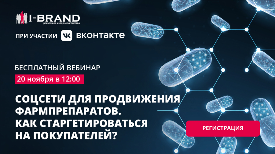 20 ноября состоится бесплатный вебинар digital-агентства I-Brand при участии «ВКонтакте» для фармацевтических компаний. Спикеры расскажут о продвижении фармацевтических продуктов в Facebook, «ВКонтакте», Instagram, «Одноклассниках» и TikTok. Речь пойдет о таргетированной рекламе в соцсетях, ее преимуществах и способах настройки.