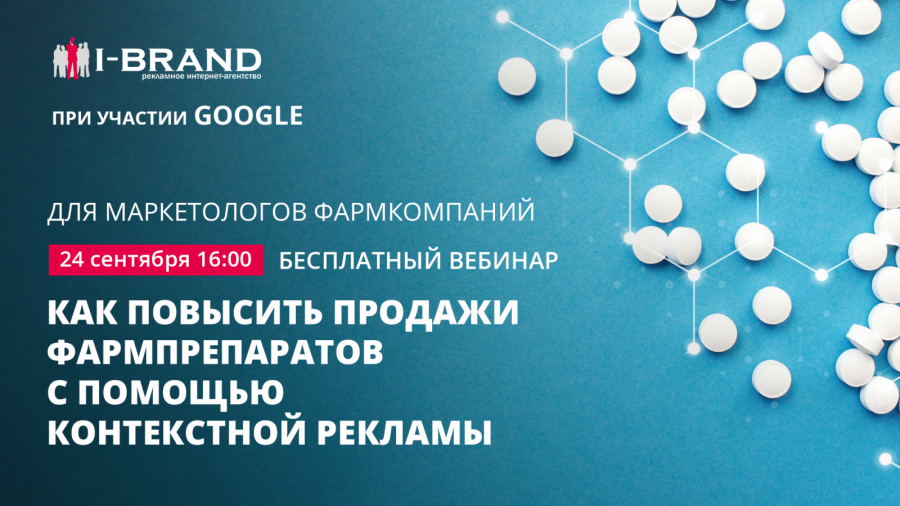 I-Brand открывает серию образовательных онлайн-встреч для участников фармрынка — Pharma Performance, в которых будет рассказывать о лучших digital-инструментах для повышения продаж фармацевтических продуктов. При участии Google digital-агентство проведет бесплатный вебинар по digital-продвижению для фармацевтической отрасли. Вебинар на тему «Как повысить продажи фармпрепаратов с помощью контекстной рекламы?» пройдет 24 сентября в 16:00.