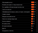 Так, 36% опрошенных выступили за длинное видео против 68% респондентов, препочитающих короткие ролики. По мнению аналитиков, это связано со сложностью производства длинного видео. Также заметен интерес к форматам с геймификацией и вовлечением пользователей — квизы, тесты, опросы.