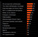 Лидерами стали текстовые публикации — короткие посты и лонгриды, а также визуальный контент (фото, видео). При этом с длинным видео (более 2 мин) работают реже.