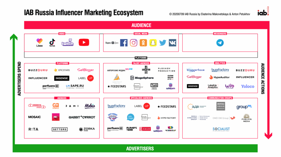 Мы все уверены, что рекламодатель должен хорошо понимать, как, с кем и где он хочет начать свою первую рекламную кампанию с использованием инструментов инфлюенсер-маркетинга. Экосистема, подготовленная экспертами IAB Russia, поможет ответить на большую часть этих вопросов и тем самым снизить шанс на ошибку.
