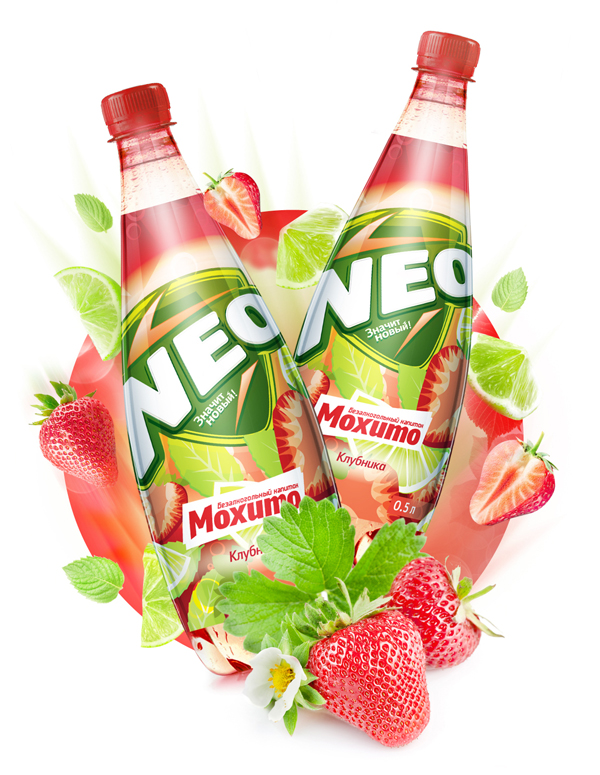 Полки магазинов Дальнего Востока богаты напитками различных вкусов. В связи с этим, группе компаний «Аква Групп» для вывода новой серии напитков NEO - «Мохито» и брусничный энергетик - потребовалось создание оригинального дизайна логотипа и этикетки, который был бы способен заинтересовать определенный сегмент потребителей и выделить продукт среди конкурентов в точках продаж.