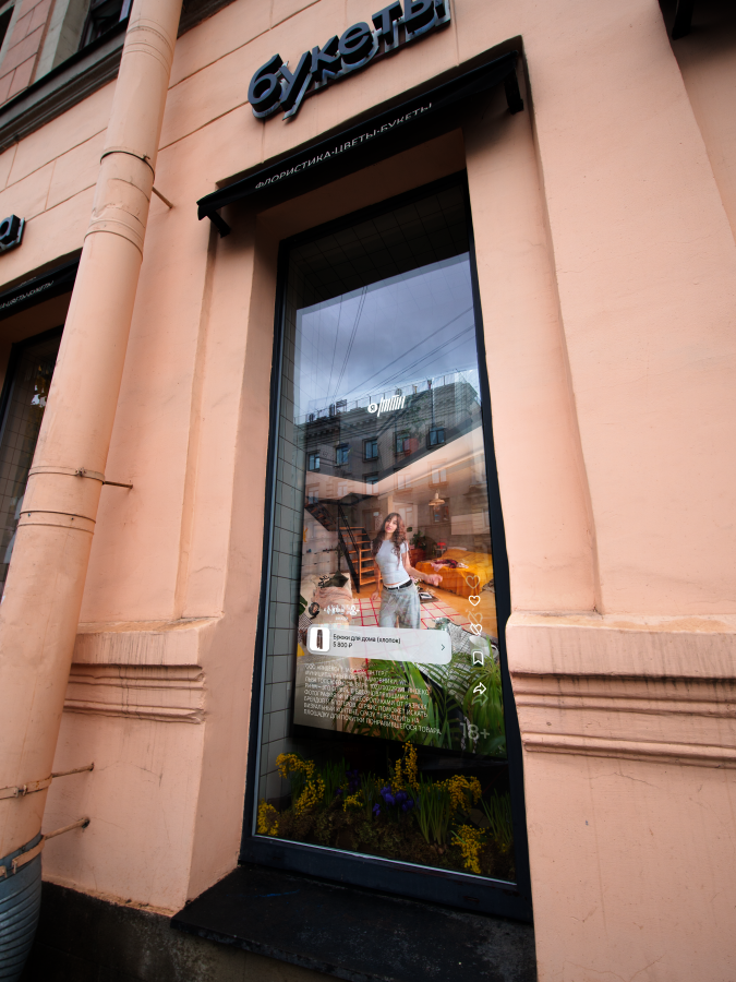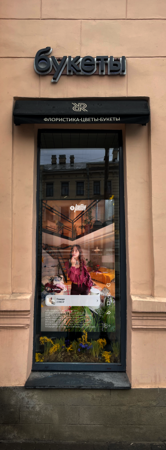 «Яндекс Ритм» отразил выводы исследования в визуальном формате. В центре Санкт-Петербурга был реализован перформанс. В течение 15 часов в витрине цветочного пространства Roots транслировался обычный день девушки: от утренних ритуалов до выбора цветов для себя и вечернего отдыха.