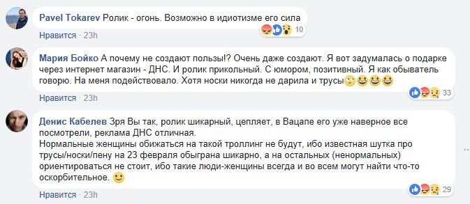 Однако нашлись и те, которые оценили юмор ролика, высказав предположение, что если будет снят аналогичный ролик к 8 марта, проблем у бренда не возникнет.