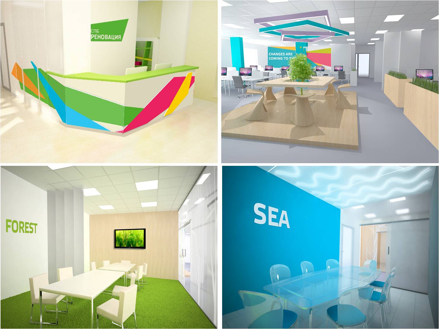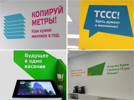 Игровой дискурс применяется и тогда, когда возникает необходимость внедрить правильное восприятие бренда внутри компании. Брендинг пространства – отличный инструмент решения подобных задач. Так, лейтмотивом дизайн-концепции офиса крупнейшего петербургского девелопера «СПб Реновация» мы сделали запоминающиеся, подчас шутливые слоганы, изображения и инсталляции, повсеместно размещенные в штаб-квартире.