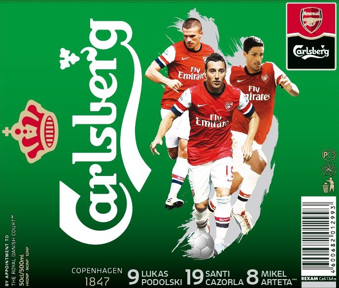 В разгар футбольного сезона бренд Carlsberg – официальный пивной партнер футбольного клуба Arsenal – представляет эксклюзивную новинку. В продажу по всей России поступила ограниченная партия банок пива Carlsberg c изображениями ключевых игроков клуба Arsenal: Лукаса Подольски, Санти Касорлы, Микеля Артета.