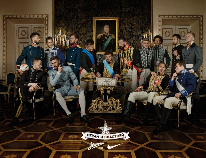Действующие чемпионы России по футболу сезона 2014/2015 футболисты «Зенита» примерили на себя образ аристократов XIX века в имиджевой рекламной кампании бреда спортивно одежды и снаряжений Nike. В кампании «Играй и властвуй» футболисты отправляются в путешествие в век, когда Санкт-Петербург был столицей Российской Империи. Креативная концепция кампании принадлежит команде агентства Wieden+Kennedy Amsterdam.