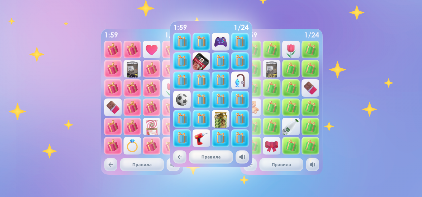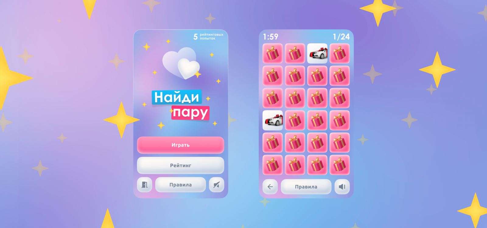 Внутри приложения «Клуб Друзей Дикси» создали игру в жанре «Найди пару». Её механика поощряла активное использование карты и участие в программе лояльности. Простые правила игры без сложного онбординга позволяли пользователям получать бонусы уже при первом заходе в приложение.