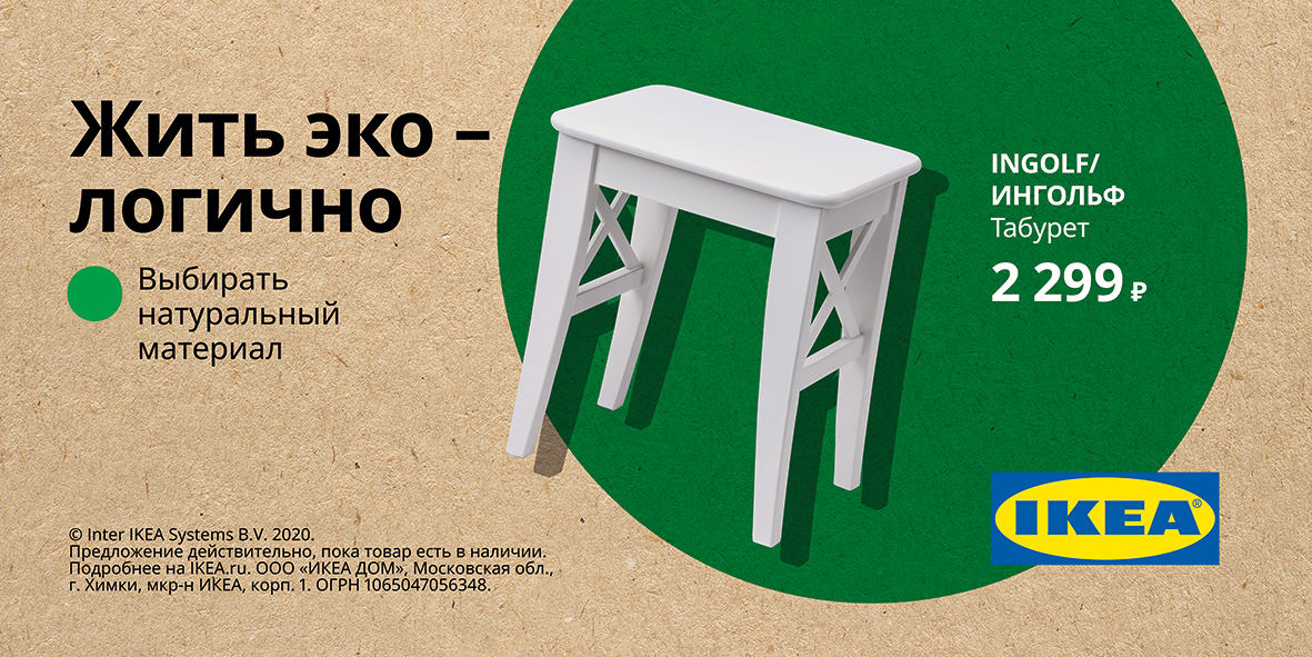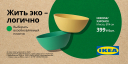 На улицах российских городов кампания будет стремится привлечь внимание к теме осознанного потребления с помощью оригинального слогана «Жить эко — логично» и тезисов о том, как конкретный товар IKEA будет способствовать этому.