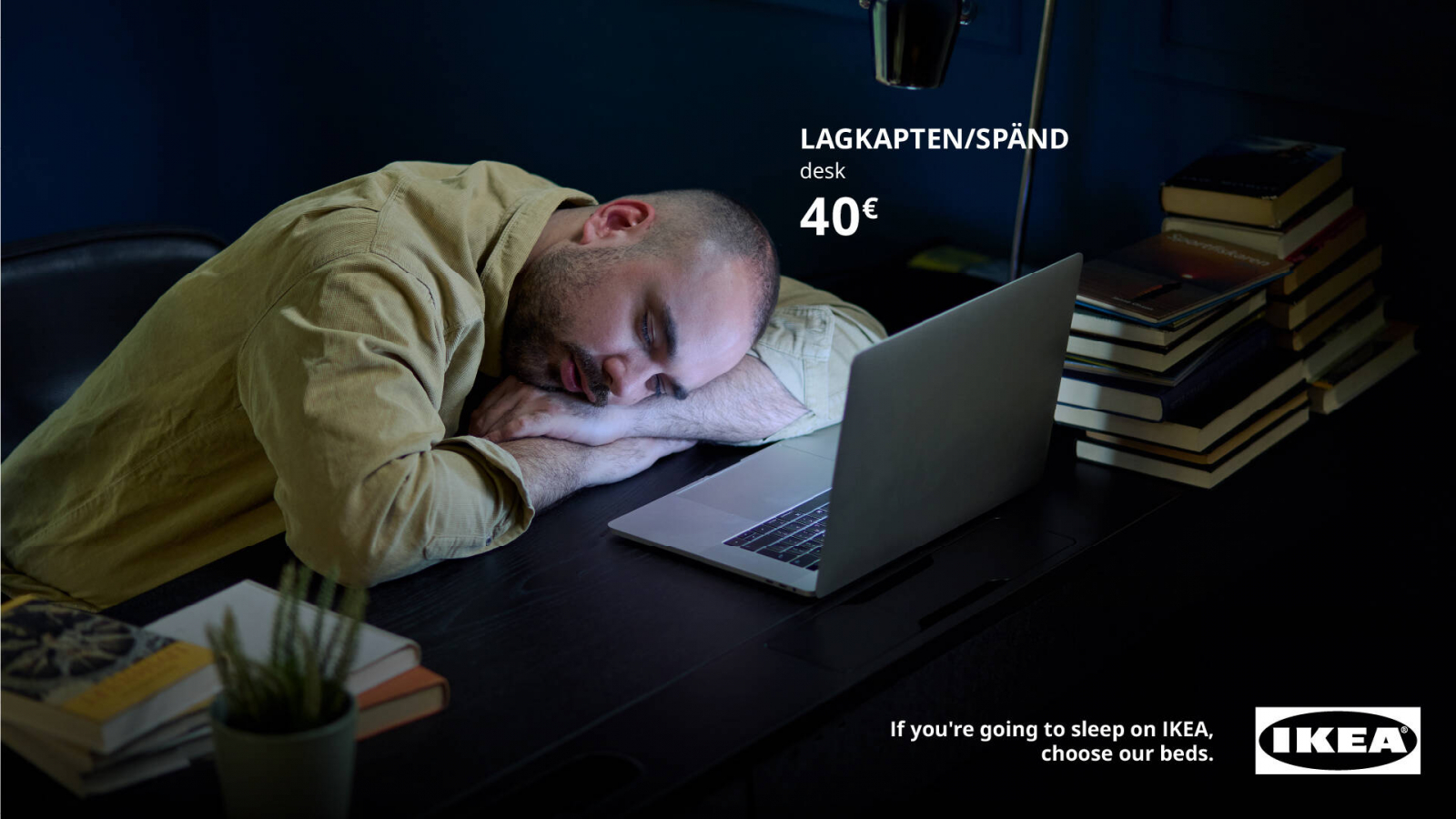 IKEA и агентство The Newtons Laboratory выпустили рекламную кампанию для греческого рынка, в которой с юмором напомнили: сон заслуживает лучшего места, чем офисный стол или неудобный диван. В серии постеров изображены люди, мирно спящие на мебели, явно не предназначенной для сна — на стульях, кухонных столах и даже на телевизионных тумбах.
