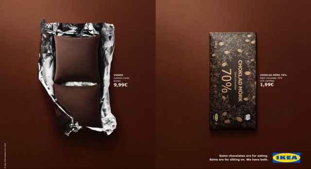 На самом деле под оберткой горького шоколада IKEA скрываются подушки, комоды, столы… В общем, товары так далекие от сладостей, но, как ни странно, очень на них похожие.
