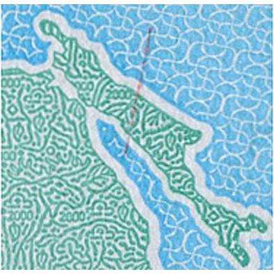 Необходимо отметить, что в дизайне банкноты географическое изображение материка и островов нашей страны выделено белым контуром, необходимым для более четкого восприятия изображения на банкноте в целом, и естественно в местах изображения узких проливов белые контуры материка и острова сливаются, что, впрочем, не мешает видеть, что зеленые изображения материка и о.Сахалин не соединяются друг с другом. Для ясности прилагаем изображение материка и острова Сахалин на банкноте, увеличенное в 10 раз».