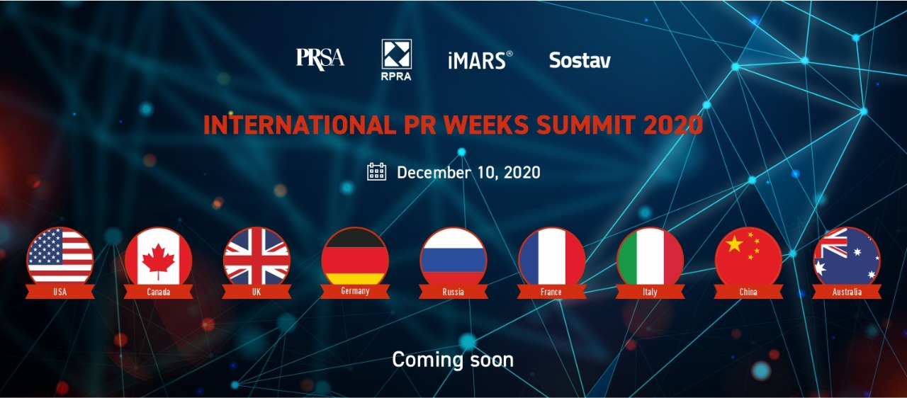 Международный саммит по коммуникациям International PR Weeks Summit 2020 состоится 10 декабря и станет итоговым событием серии конференций International PR Weeks 2020. Программа будет посвящена итогам текущего года в части процесса трансформации мировой и российской коммуникационной индустрии. Организатор — коммуникационная группа
