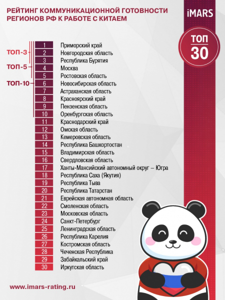Несмотря на то, что «поворот на Восток» уже стартовал, присутствием российских регионов в медиапространстве Китая управляют случайные инфоповоды. Образ России как страны-экспортера качественных товаров и услуг не сформирован в глазах китайских потребителей. Реализация экспортного потенциала российских компаний и инвестиционная привлекательность регионов существенно ограничивается. Об этом говорится в исследовании готовности регионов РФ к работе с Китаем, проведенном коммуникационной группой iMARS.