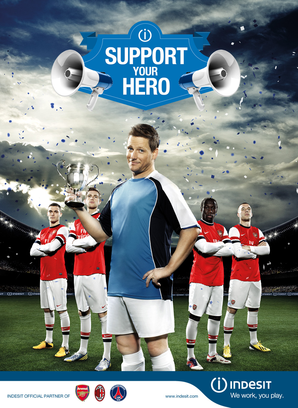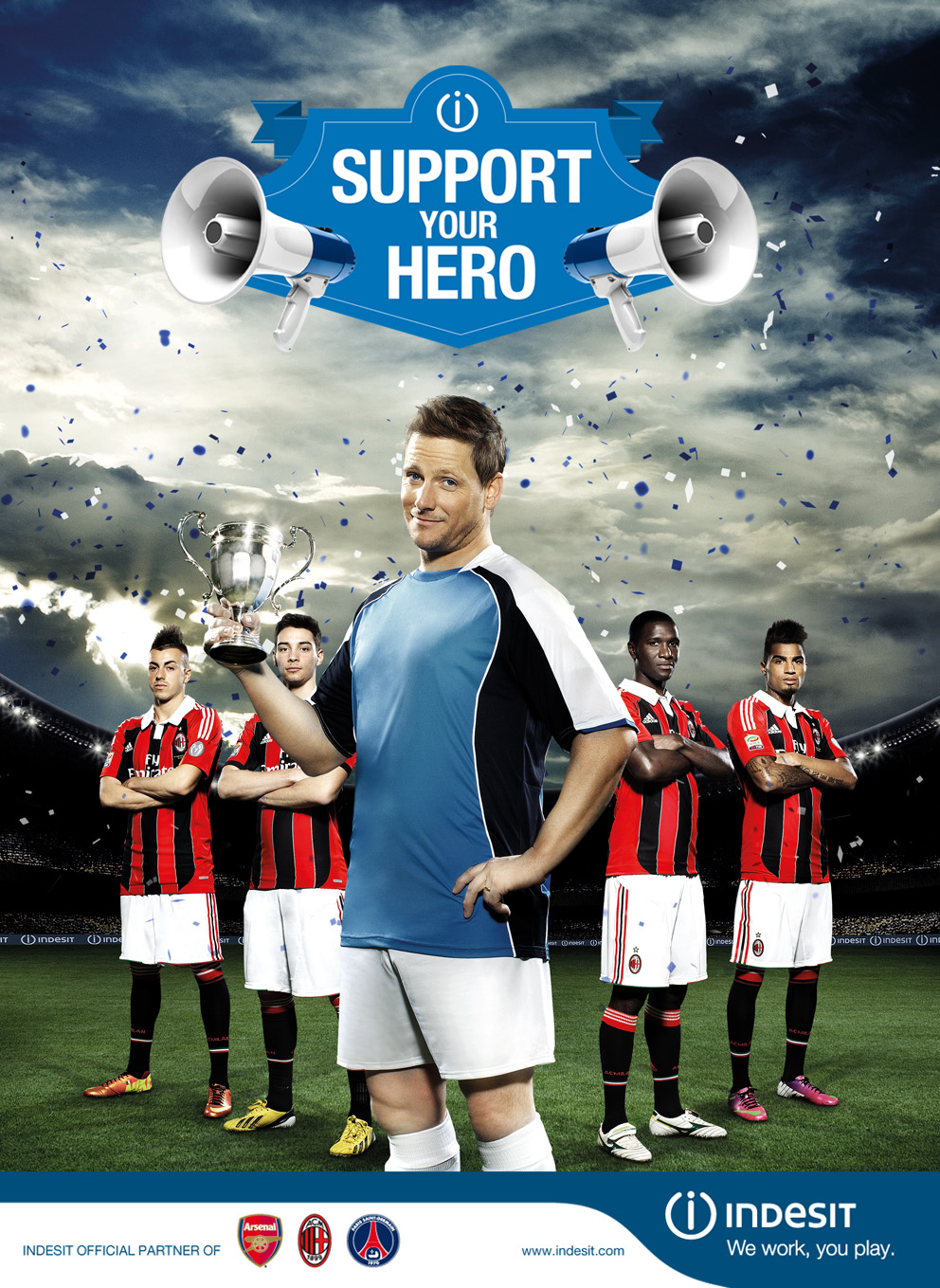 Компания Indesit представляет новый «спортивный» проект: поклонникам футбола и их девушкам предлагается поучаствовать в конкурсе под названием «Поддержи своего героя». Бренд, с 2011 года являющийся спонсором футбольных клубов «Арсенал», «Милан» и «Пари Сен-Жермен», продолжает следовать своей миссии.