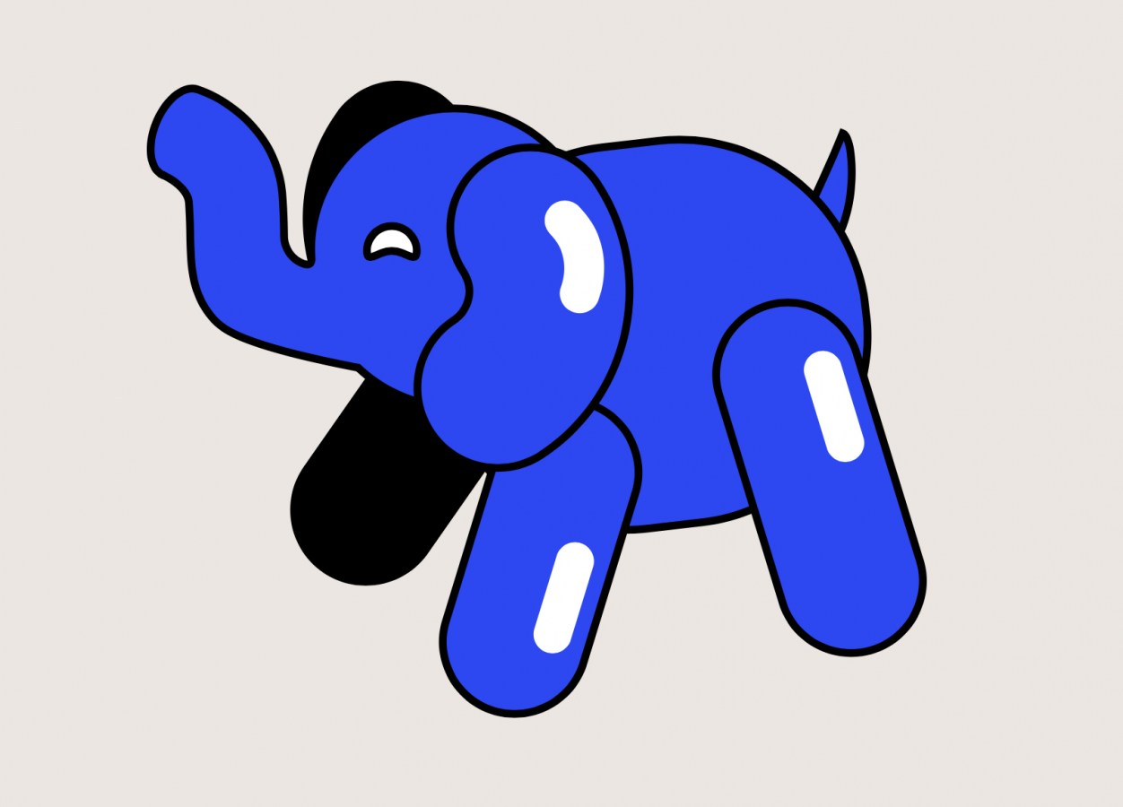 Как рассказали во «ВкусВилле», фирменный персонаж проекта — «будто бы скрученный из воздушных шариков» синий слон — словно зависает над землёй, подчёркивая концепцию айдентики, которая основана на образах медитации и отделении духовного опыта от материального мира. Слон имеет только один вариант визуализации — в фирменном синем цвете и используется только в одной позе.