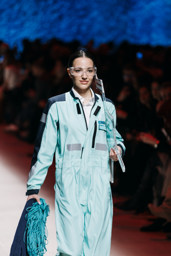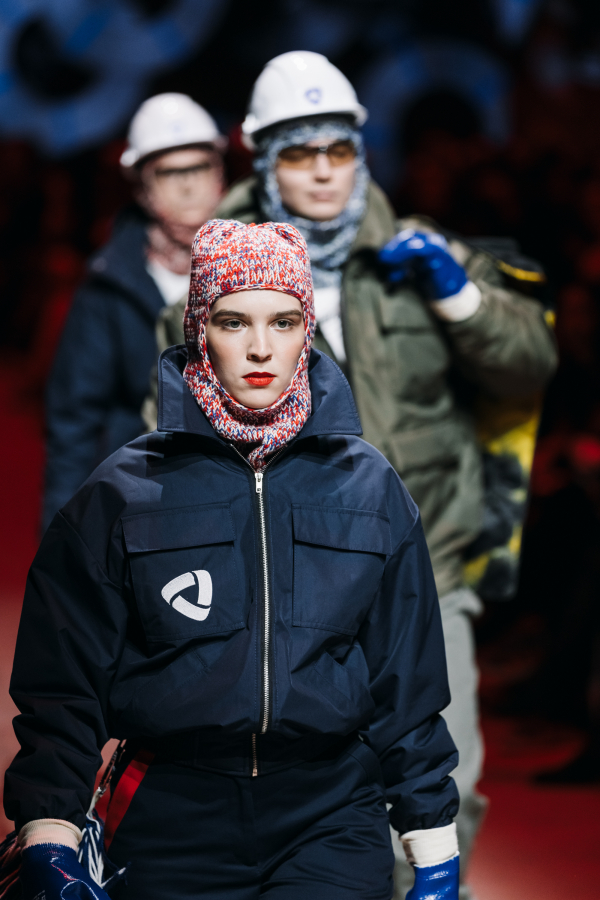 Дальше встал вопрос формата. Если говорить про моду всерьез, то делать это нужно на территории, где она живет и формируется. Таким пространством стала Московская неделя моды. Вдохновением послужили показы международных брендов вроде Prada, Miu Miu и Martine Rose, которые уже несколько сезонов работают с эстетикой рабочей одежды. Опираясь на их опыт, мы сформировали концепцию проекта — Индустриального показа, который позволит показать рабочую форму на подиуме и представить ее как часть современной культуры.