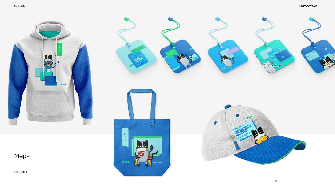 Департамент информационных технологий — самый большой в «Ингосстрахе», и для команды было важно сделать так, чтобы сотрудники могли использовать привлекательный фирменный стиль. Еще одним важным аргументом стал тот факт, что приглашать на работу в компанию молодых специалистов проще, если у ИТ есть свой, особенный стиль с мерчем и модными иллюстрациями. Пример других компаний также показал, что для ИТ-подразделений часто разрабатывается отдельная айдентика.