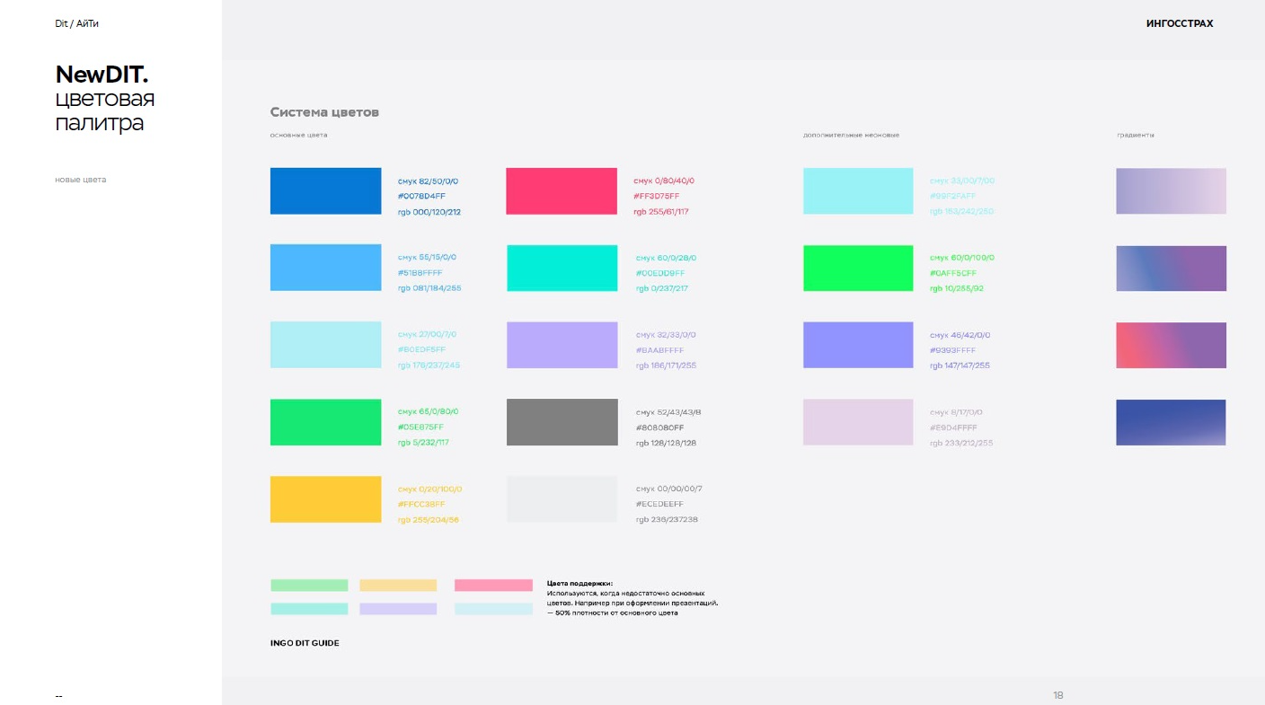 Новый фирменный стиль ИТ был разработан отделом бренд-менеджмента «Ингосстраха» совместно с департаментом информационных технологий. Исследуя рынок, команда решила сделать яркие принты в стиле 80-х, которые привлекают внимание аудитории. Для коммуникаций были разработаны модные неоновые цвета, бабблы, курсоры, буллиты и текстовые блоки.