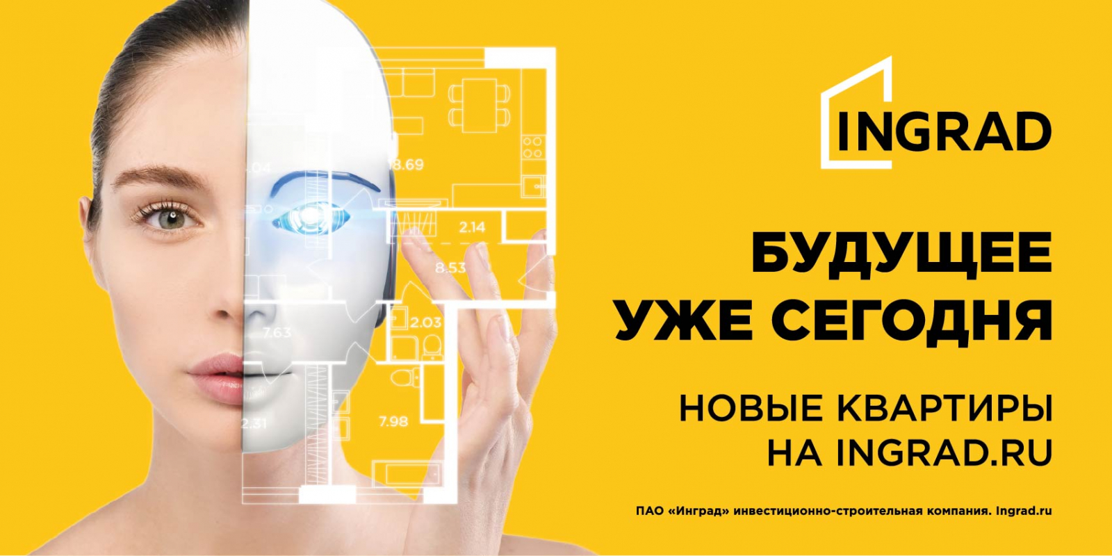 Основным посылом кампании стали слоганы «Будущее уже сегодня. Новые квартиры на ingrad.ru». Рекламные макеты выполнены в духе постеров супергеройского блокбастера: вокруг лиц «людей будущего» вращаются голографические картинки, составленные из элементов квартирных планировок и логотипов жилых кварталов INGRAD, выстраивающих мостик между сферой деятельности компании и футуристическим стилем макетов.