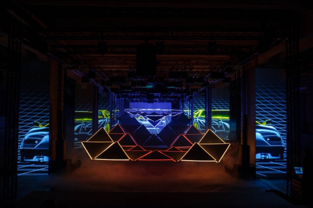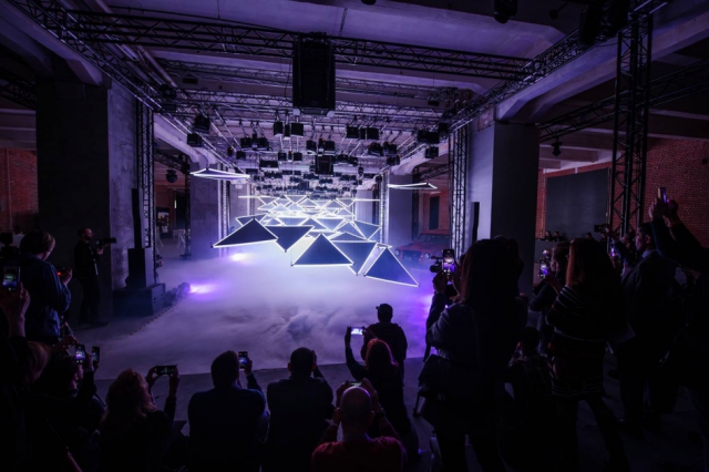 В премьерном шоу были задействованы: проекции на кинетические поверхности, 56 уникальных треугольников, оснащенных по периметру светодиодами (почти 300 м. световой ленты), 14 проекторов разрешения 4К.