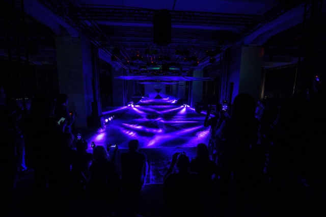 При разработке технологии были учтены перспектива и угол обзора, в итоге «заиграли» все возможные поверхности площадки, от бетонных колонн до гигантских кинетических массивов: локейшн обернулся одним мультифунциональным пространством, все вокруг превратилось в единый четырехмерный оживший кадр.