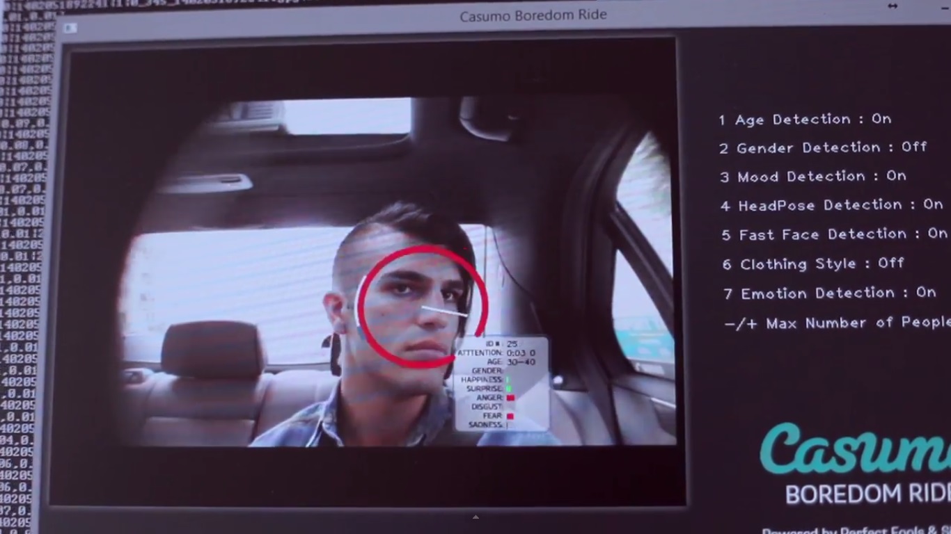 Компьютер вычислял, как долго скучают люди на заднем сиденье. В конце поездки клиенты получали чек с логотипом Casumo и информацией, сколько времени отнимает у них скука. При этом платили они только за время, когда выглядели счастливыми. Промо-код на чеке пассажиры могли использовать на сайте Casumo.