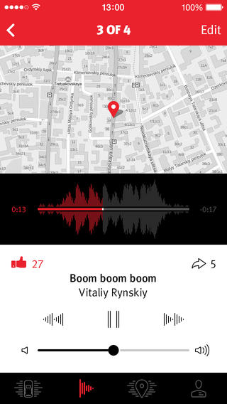 Знакомый городской пейзаж откроет свои новые грани, ведь каждая улица, по которой проедет SEAT, получит свою уникальную мелодию. Во время поездки приложение считывает карту города, используя GPS-навигацию, анализирует скорость движения и дистанцию от автомобиля до городских объектов вокруг. В сумме все эти данные позволяют создавать неповторимые музыкальные треки в режиме реального времени, которые визуально отображаются в виде звуковой волны.