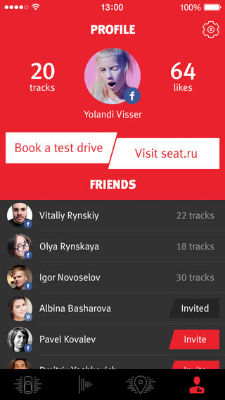 Приложение позволит делиться своими треками, прослушивать композиции друзей и отмечать понравившиеся. А увеличить количество треков можно с помощью социальных сетей, или записавшись на тест-драйв у официального дилера SEAT.