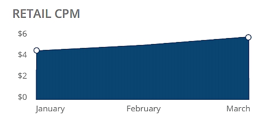 У ритейлеров существенно увеличились рекламные показатели в первом квартале 2016, несмотря на двукратное падение среднего CPM по сравнению с прошлым годом. СРM, категории, по прогнозам аналитиков, обязательно увеличится к весне – времени сезонных распродаж в digital.
