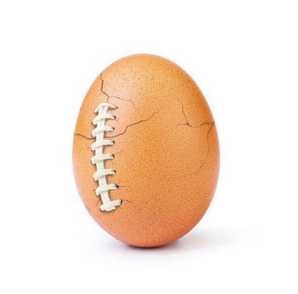 На последнем снимке яйцо «перешили» специальными шнурками, сделав его похожим на мяч для игры в американский футбол. Тем самым, яйцо стало очередной мощной рекламой Суперкубка. Оно прорекламировало трансляцию Super Bowl LIII на стриминговом сервисе Hulu, тем самым подтвердив негласное звание турнира как события с самой дорогой рекламой.
