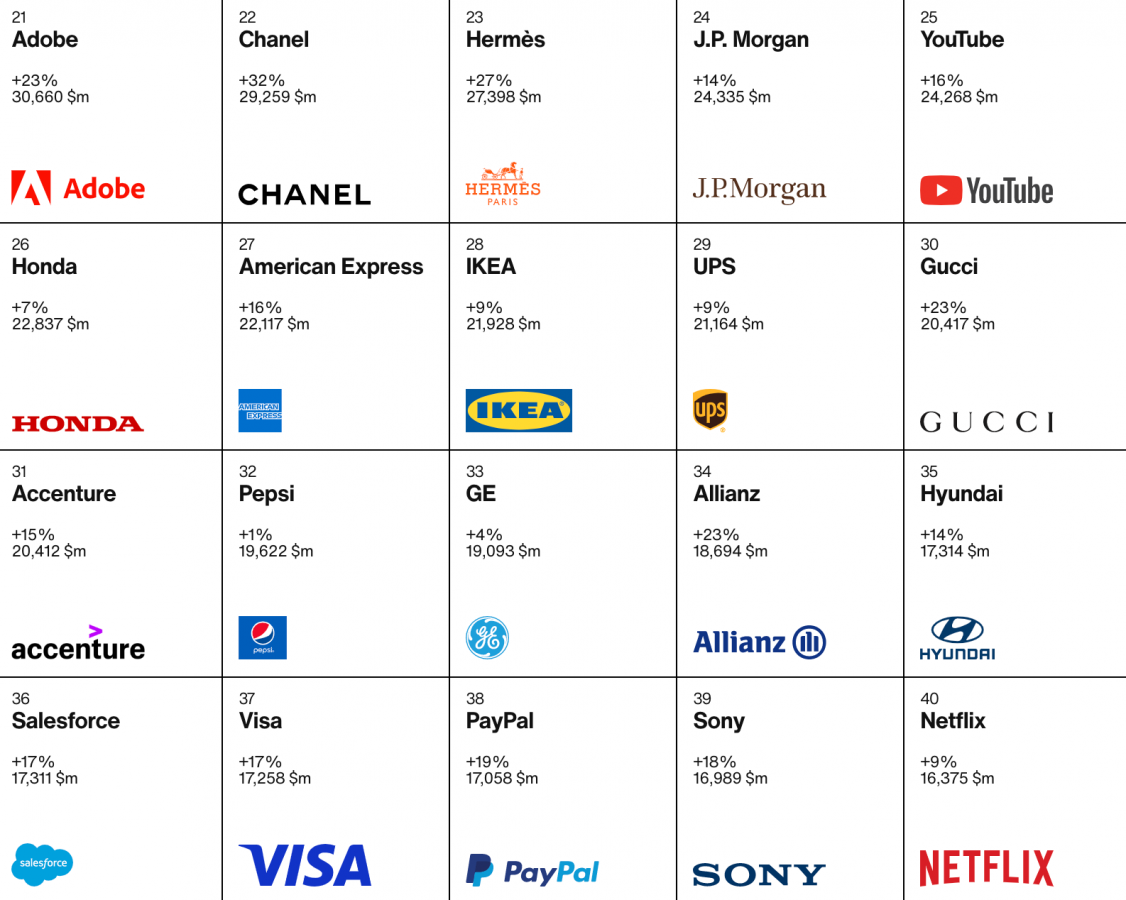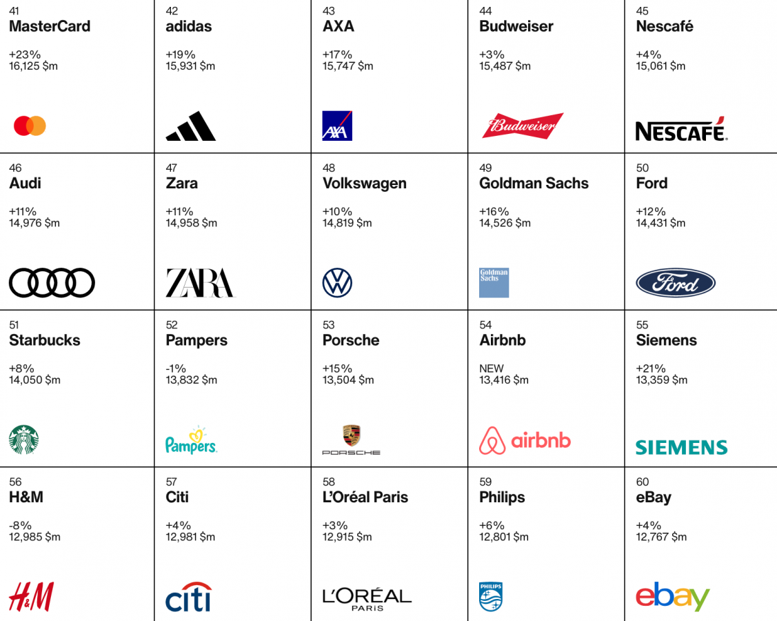 «В этом году наблюдаются самые быстрые темпы роста стоимости брендов за всю историю, что демонстрирует растущий вклад марок компании в обеспечение её экономического успеха» — подчеркнули в Interbrand. Суммарно стоимость десяти лучших брендов превышает общую стоимость 90 других марок в списке, подчеркнули в компании.