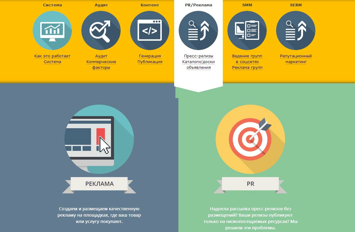 В это же время PerfectSEO полностью отказалась от ссылок и сделала ставку на поведенческие факторы в поисковой оптимизации, разработав систему автоматического продвижения сайта. Сама по себе автоматическая «раскрутка» для рынка инструмент не новый – контекстная реклама и SEO давно привыкли к этому режиму (системы MegaIndex, SeoPult, Rookee, Garpun, Aori и другие), однако комплекс автоматических услуг по генерации контента, ведению групп в соцсетях, созданию и рассылке пресс-релизов, а также репутационный маркетинг пока не предлагал никто.