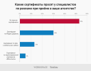 Только 23% агентств считают наличие высшего образования обязательным для своих специалистов по рекламе, при этом лишь 5% из них требуют профильное. 62% респондентов выразили мнение, что главное — опыт и компетенции. В 53% агентств у соискателей не требуют даже наличия сертификатов.