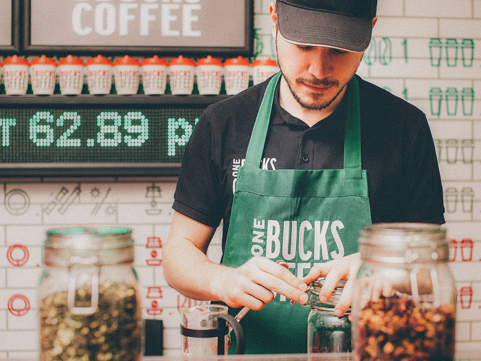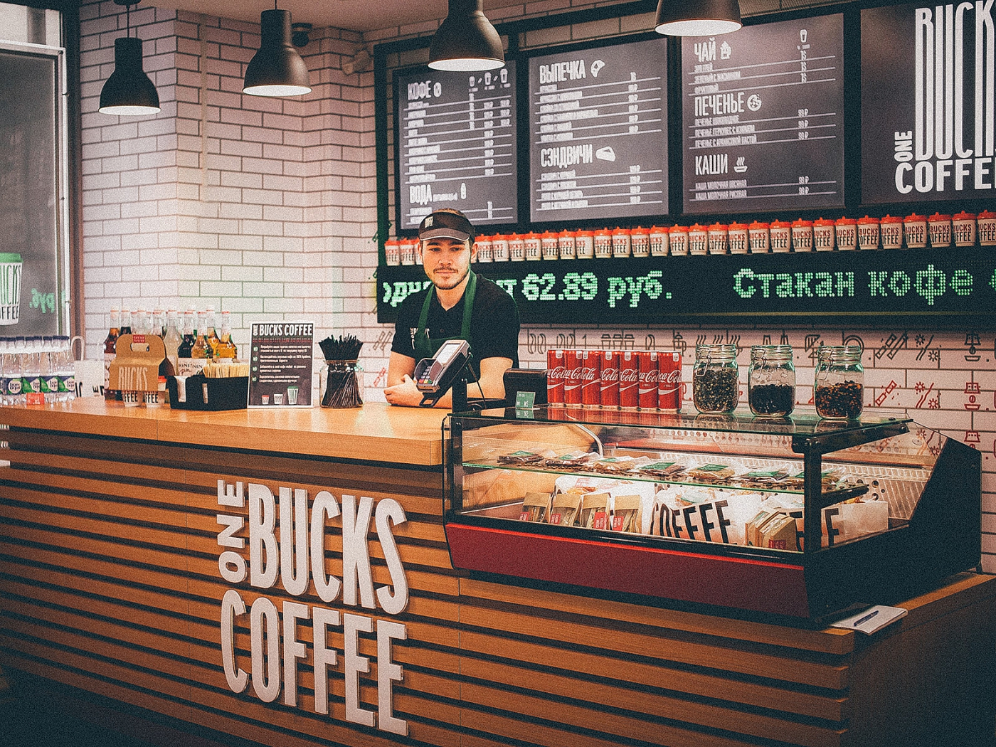 По словам представителей агентства, бизнес-идея проекта заложена в его названии: One Bucks Coffee — «кофе за доллар». В сети мини-кофеен покупателям предлагают кофе за $ 1 по текущему курсу ЦБ, при этом курс доллара каждый день обновляется на фирменном электронном табло у входа.