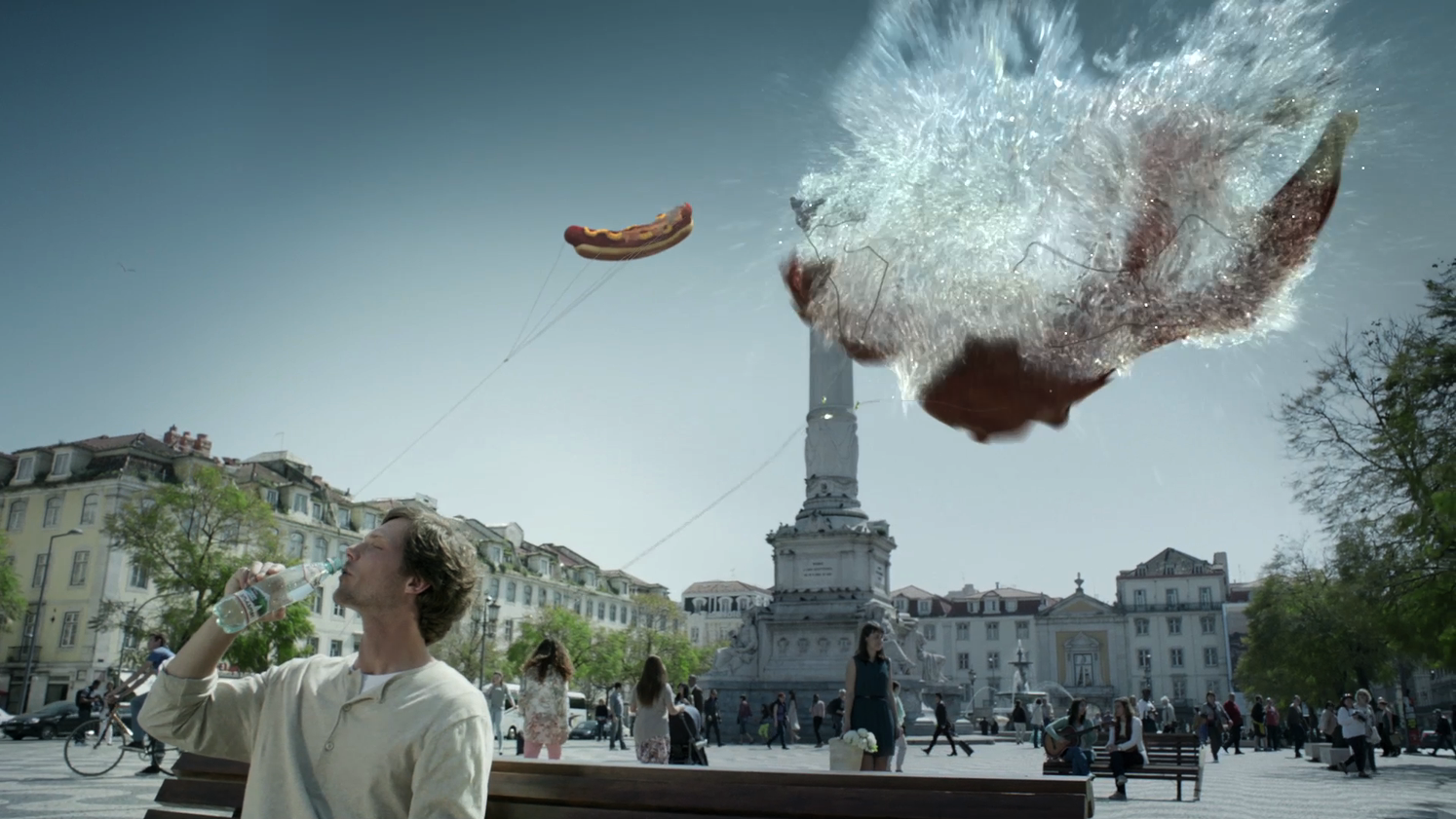 Гигантские воздушные шары, символизирующие переедание, фаст-фуд и алкоголь с похмельем мешают людям заниматься их повседневными делами. Но каждый глоток «Боржоми» помогает избавиться от этих последствий и дарит людям хорошее самочувствие.