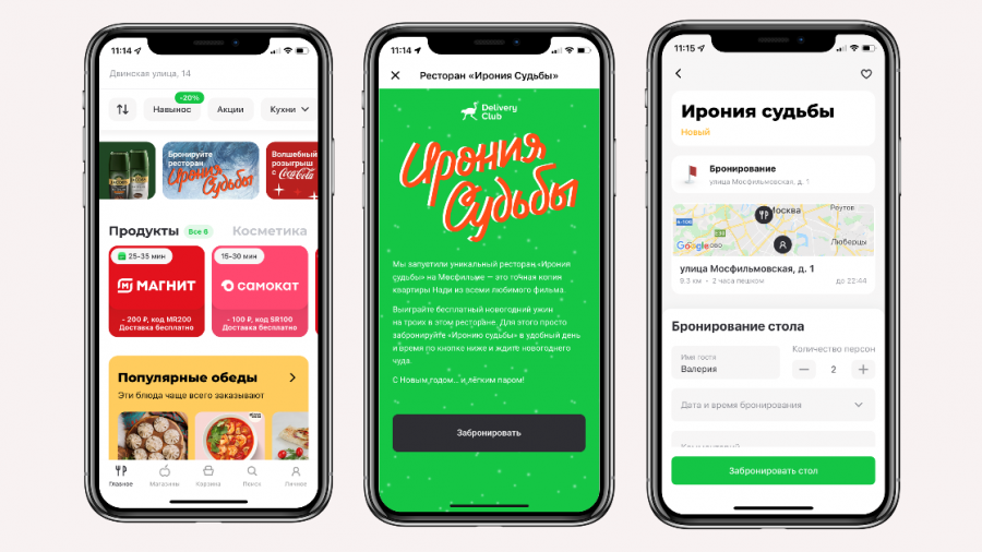 Для участия в приложении сервиса нужно выбрать «Бронируйте ресторан "Ирония судьбы"» и забронировать слот на подходящее время. Сам ужин будет бесплатным.