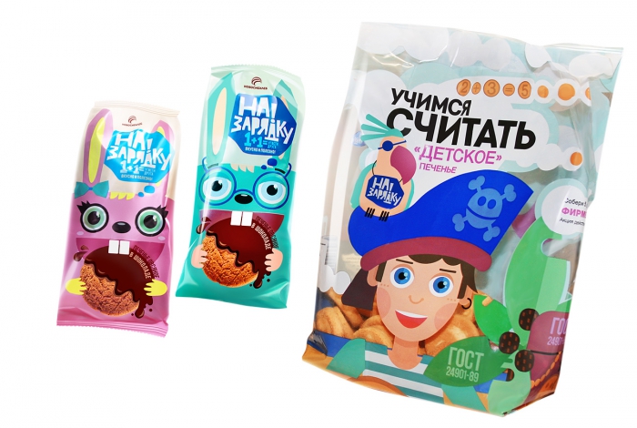 Продолжая развитие торговой марки «На зарядку», компания «Новосибхлеб» выпустила детское печенье «Учимся считать». Перед арт-группой TWET была поставлена задача разработать дизайн упаковки нового продукта с учётом преемственности серии «На зарядку».