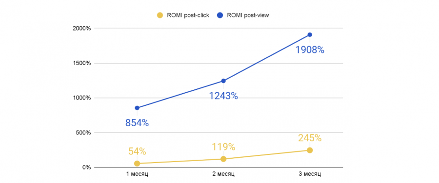 В рамках такой персонализации предложение чётко попадает в запрос пользователя. Покупатель получает оффер, от которого не может отказаться. И это обуславливает эффективность инструмента и высокие показатели возврата на маркетинговые инвестиции. По данным «Детского мира», средний ROMI при продвижении с помощью Smart Placement Ads исчисляется в нескольких сотнях процентов, а порой достигает четырёхзначных цифр.