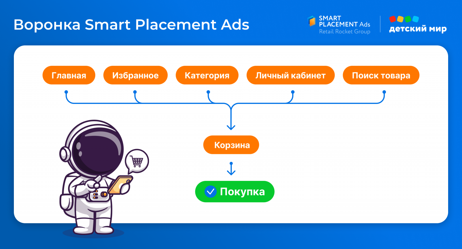 Более того, ML-алгоритм учитывает тайминг и эффективность каждого этапа пути покупателя. Пользователи маркетплейса видят рекламу именно в тот момент и в том месте, где скорее всего произойдет конверсия в покупку.