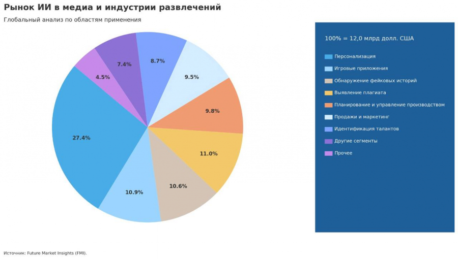 В ближайшие годы до 90% всего онлайн-контента будет создаваться с участием ИИ. Технология уже сегодня меняет подходы к производству в ключевых сегментах медиабизнеса — кино, анимация, игры, реклама.