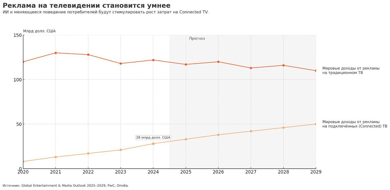 Согласно данным PWC, именно реклама с использованием ИИ (точный таргетинг, гиперперсонализация) станет главным драйвером роста выручки медиаиндустрии. По отчетам Mckinsey до 60% цифровых бюджетов уже сегодня, так или иначе, завязаны на AI-решениях.
