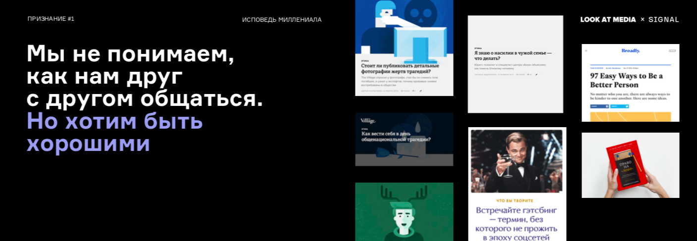 Я сама отношусь к категории миллениалов, но писать о своих сверстниках и делать обобщения мне позволяет не только этот факт сам по себе. Работая в LAM, я восемь лет изучала эту аудиторию и способы взаимодействия с ней.