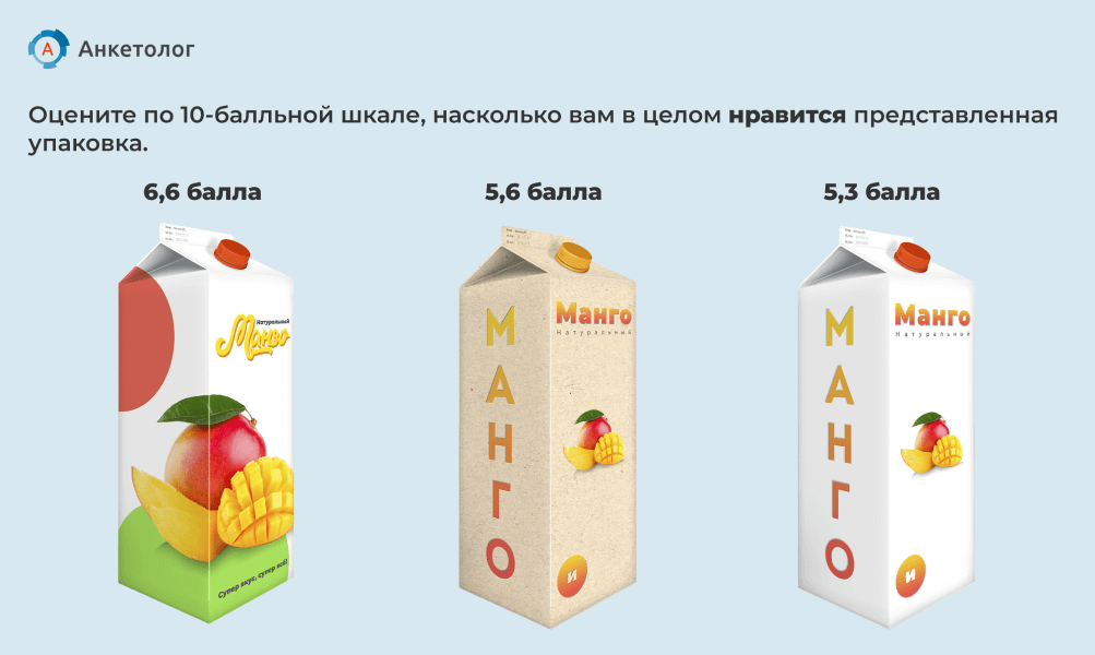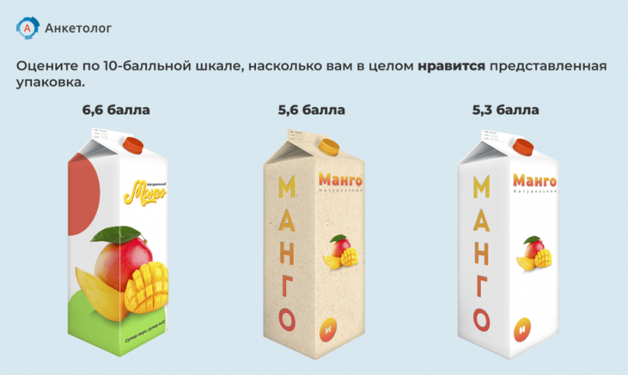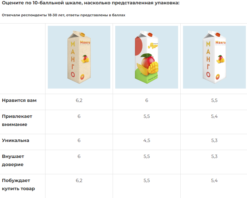 Типы оформления респонденты оценивали по пяти критериям, присуждая каждому варианту от 1 до 10 баллов. Сначала выяснили, насколько потребителям нравится дизайн. Больше всего баллов набрала яркая упаковка, на втором месте оказалась картонная, на третьем — белая.
