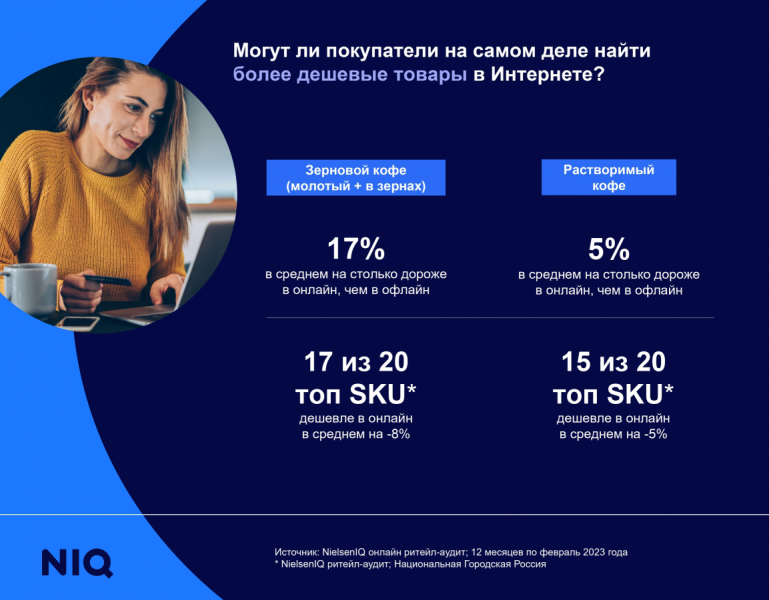 По мнению аналитиков, онлайн востребован у потребителей за счёт разнообразного ассортимента напитков и доступных цен на разные единицы товаров. К примеру, это заметно в сегменте зернового кофе: несмотря на то, что на онлайн-площадках такой кофе в среднем дороже офлайн-розницы на 17%, среди самых популярных товаров сразу 17 из 20 единиц товаров можно найти дешевле в интернете.
