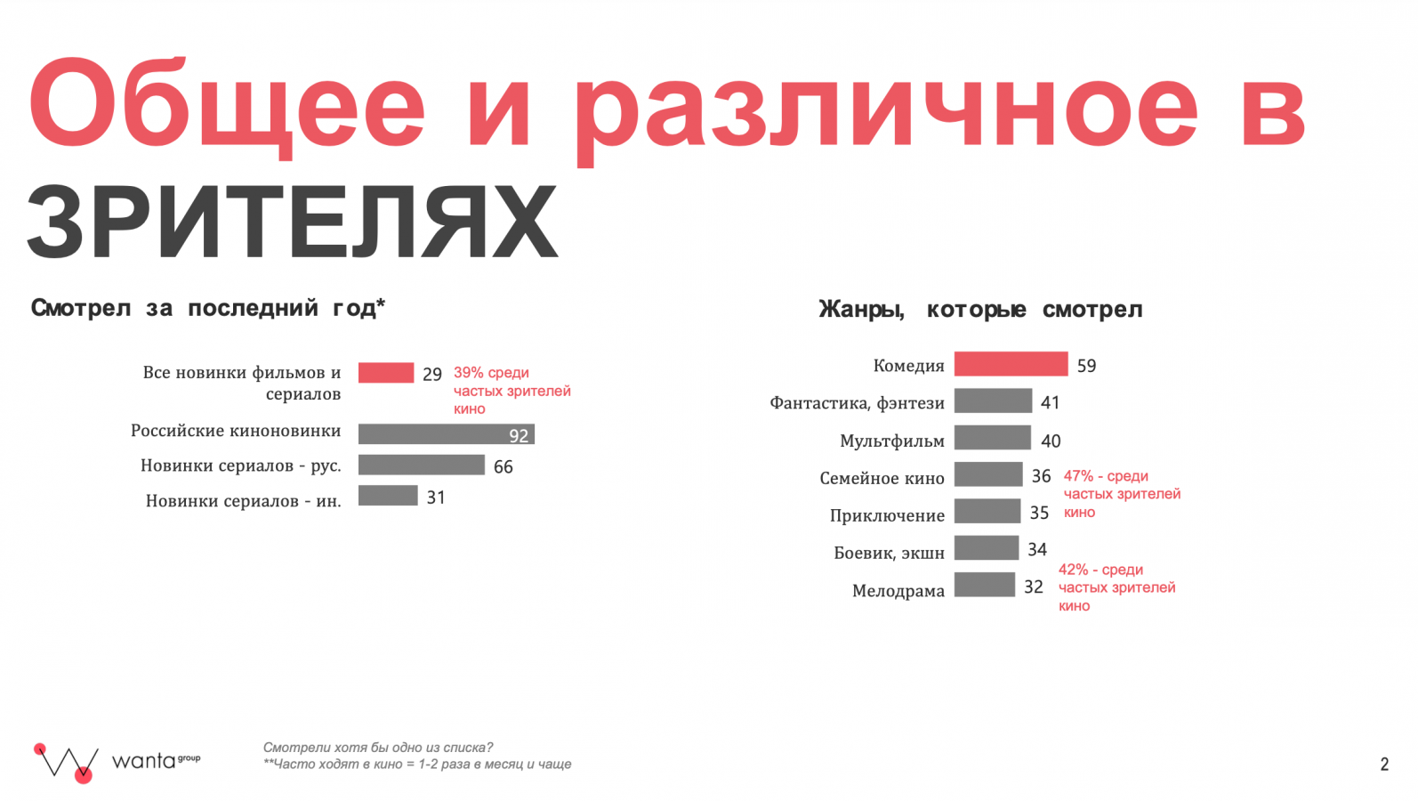 Самым неудовлетворённым сегментом относительно качества российских фильмов и сериалов оказались мужчины старше 35 лет, посчитали аналитики Wanta Group. Исследование «Герои сериалов: есть ли разница ценностей у зрителей офлайн и онлайн?» было представлено в рамках фестиваля «Пилот» генеральным директором компании Марией Щербаль. При этом большинство опрошенных удовлетворены количеством и качеством российского контента, а самым довольным сегментом оказались подростки.